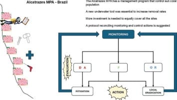 Entre 2014 e 2023, o manejo concentrou-se em apenas 3 áreas prioritárias. A partir de 2021, com o aperfeiçoamento das técnicas –inclusive o uso de brocas pneumáticas para remoção de colônias aderidas ao substrato– e com o monitoramento mais sistemático dos focos de invasão, houve aumento na taxa de controle. No entanto, os resultados variam conforme o ponto do arquipélago: enquanto alguns locais se mantêm livres da espécie por até um ano após a intervenção, outros voltam a apresentar crescimento populacional em apenas seis meses.
