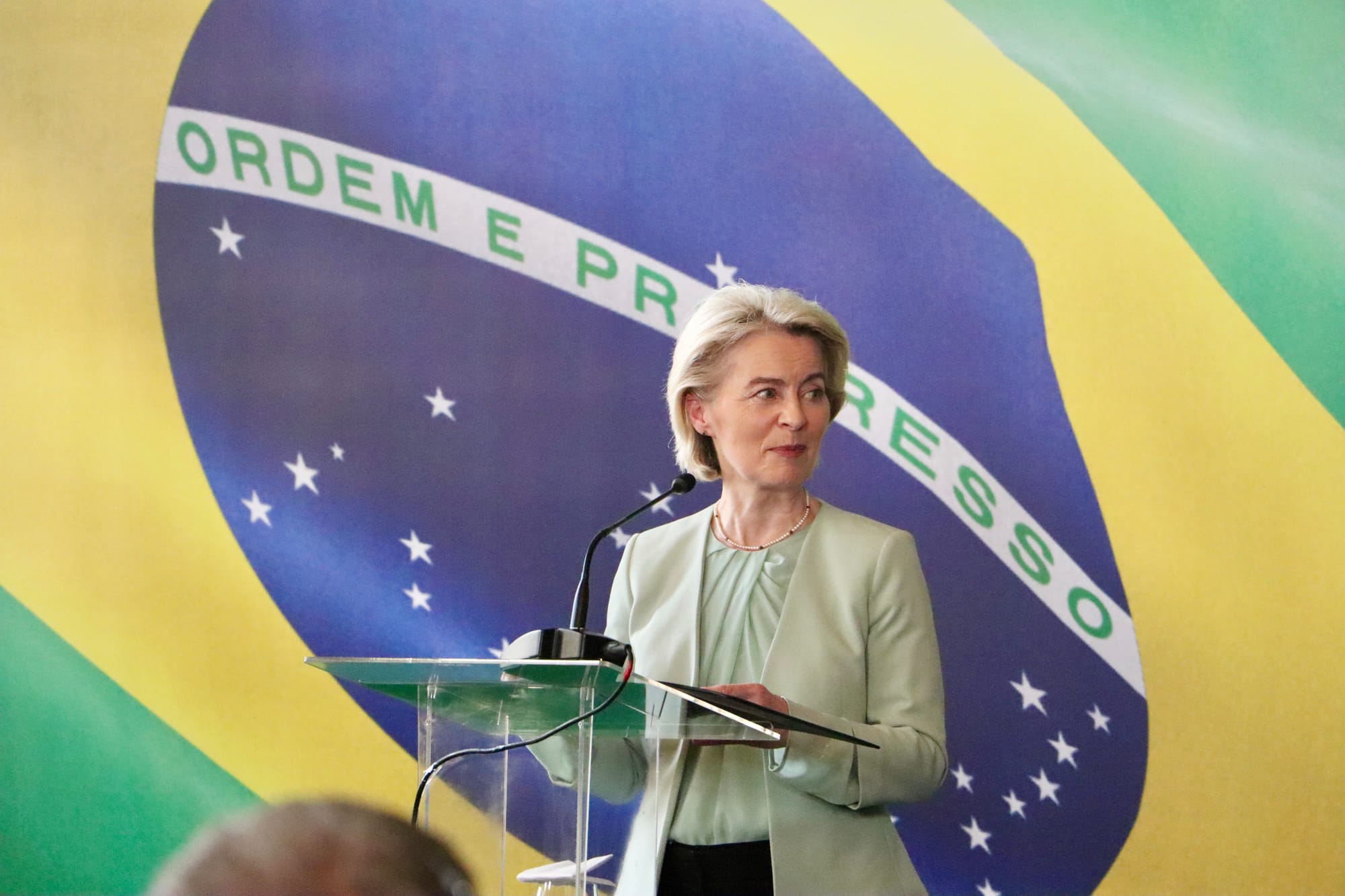 “Este é o poder da parceria e da abertura. Este é o poder da amizade e da compreensão entre povos e regiões separados por oceanos –e é assim que criamos prosperidade real, uma prosperidade que é compartilhada, porque concordamos que o comércio internacional não é um jogo de soma zero”, disse von der Leyen.